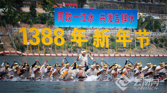 活动现场,澜沧江两岸锣鼓喧天、礼花绽放,民族歌舞精彩上演。象脚鼓、铓锣等传统乐器交相呼应,孔雀舞等特色表演轮番登场,国家级非遗代表性传承人演唱“章哈”,展现浓郁民族风情。观众与各族群众手拉手共舞,在欢快节奏中共享节日喜悦。