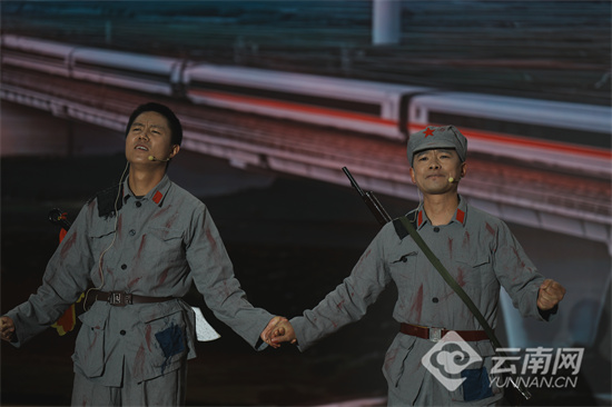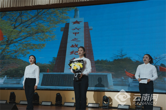 红色文艺展演同步燃情上演。主题朗诵《致那场九十年前的冲锋——纪念六甲之战90周年》、音乐情景诗《六甲忠魂》、歌伴舞《红色寻甸》等节目轮番登场,以艺术之笔再现革命征程,以精神之力传递红色信仰。沉浸式、感染力强的文艺形式让长征精神与六甲之战精神直抵人心,现场掌声雷动,气氛热烈。
