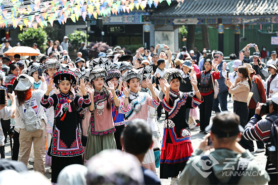 4月19日,“山水映花都・踏歌三月三”2026年西山 “三月三”系列主题活动在昆明市西山景区龙门广场启动。农历三月初三昆明人有着“耍西山”的传统,这场春日盛会吸引了众多市民游客齐聚西山,共赴民俗之约,共赏春城春光,沉浸式感受省级非物质文化遗产的魅力。