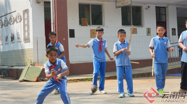 作为土生土长的镇康人,伍映兵从小就与陀螺结下不解之缘,儿时在田间地头抽打陀螺的时光,早已成为他心底最珍贵的回忆。课后服务开展以来,伍映兵便主动扛起责任,担任起陀螺教练,全身心投入到陀螺教学中。“陀螺这个项目能增强孩子们的身体素质、自身协调能力以及专注力,学习的过程还锻炼了他们坚持不懈、勇往直前的毅力。看到他们从不会到完全掌握陀螺这项技能,我内心感到无比的开心和高兴。”看着孩子们陀螺技艺一点点慢慢进步起来,伍映兵很是自豪。