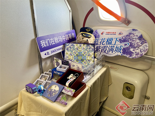 4月24日,正值昆明蓝花楹盛放如霞的最美时节,东航云南公司在MU5704(北京大兴-昆明)航班上推出“蓝花楹”主题航班。在万米高空为旅客开启一场融合自然之美、城市之韵与生活之诗的沉浸式云端之旅。
