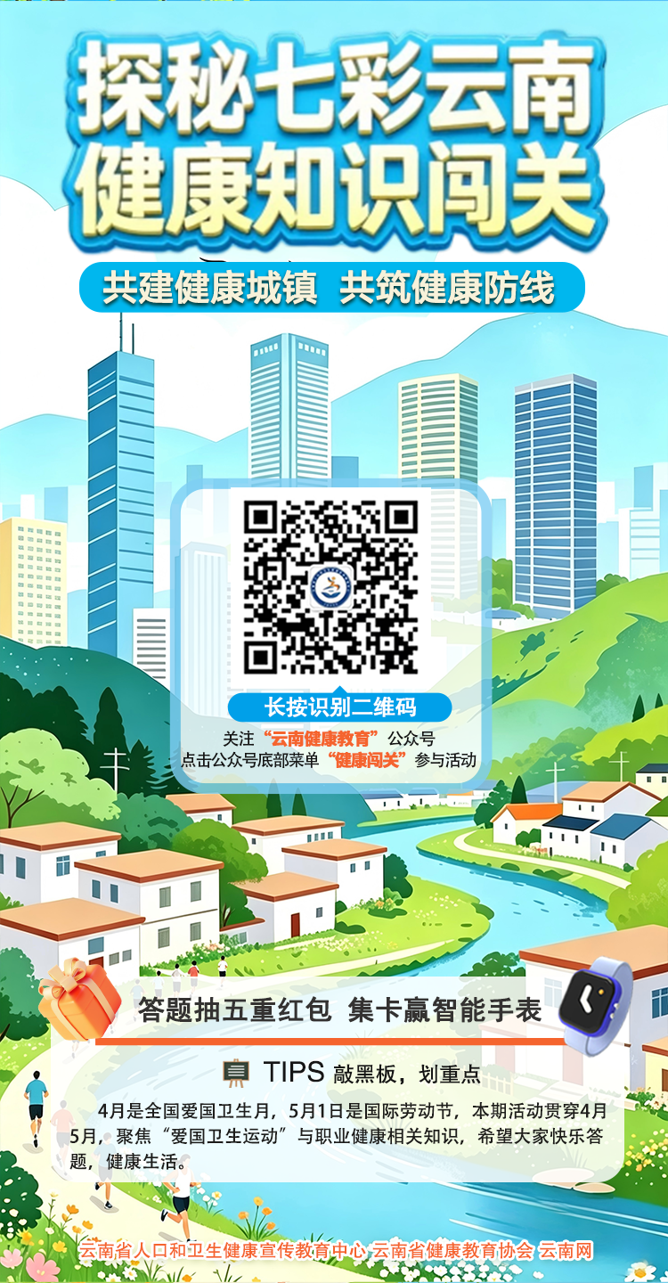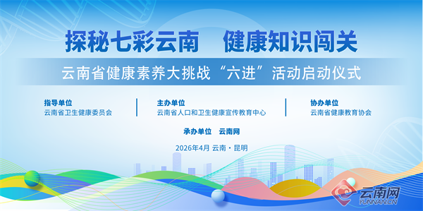 4月28日上午9:30,“探秘七彩云南 健康知识闯关”云南省健康素养大挑战“六进”系列活动启动仪式将在昆明市西山区碧鸡文化广场举行。