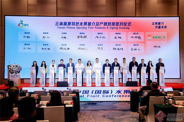本次大会同步开展云南高原特色水果推介及产销对接签约活动,昆明海广兴水果市场与云南14州市商务局签订战略合作意向协议。双方将立足产销协同,在信息互通、产地资源整合、果品分级标准化、区域品牌培育、流通渠道搭建等方面深化合作,完善产地到销地的流通体系,畅通省内水果产销循环。