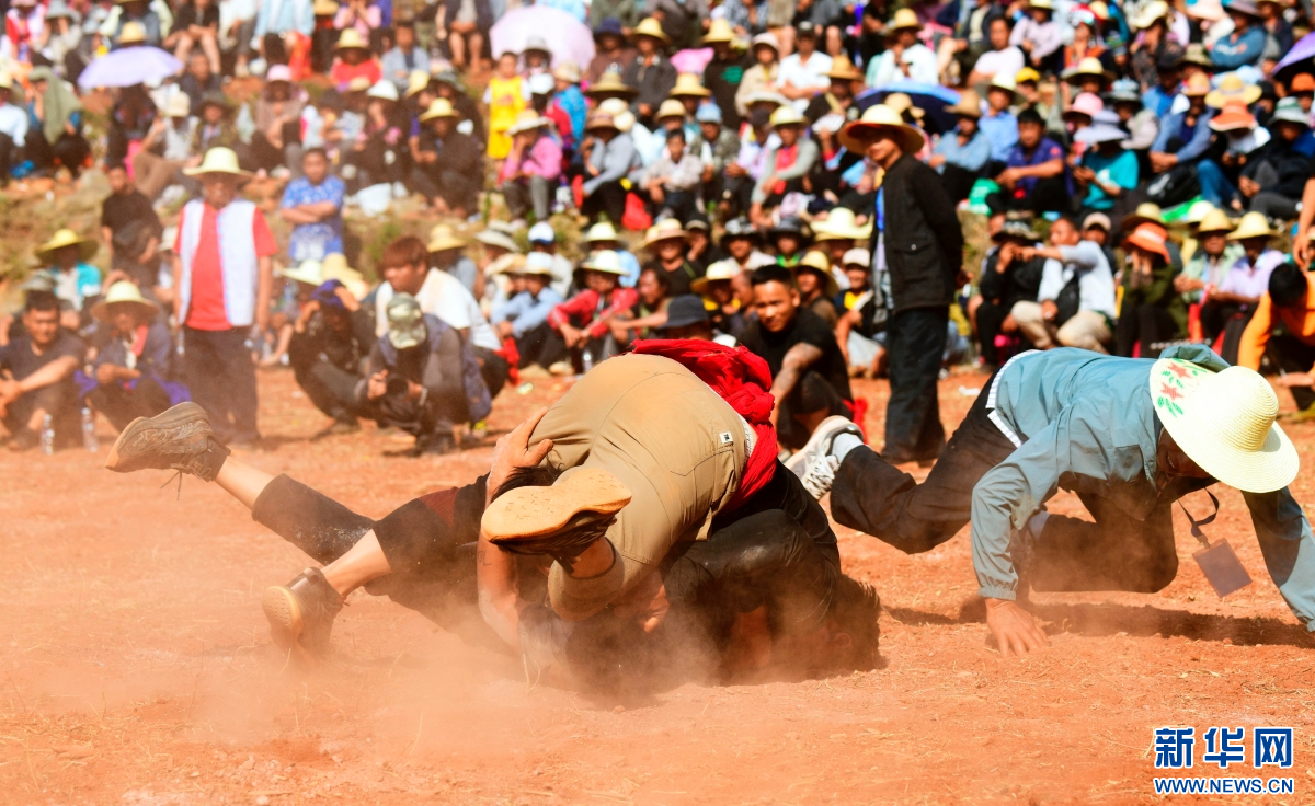 近日,云南省红河哈尼族彝族自治州弥勒市西一镇油榨村热闹非凡,当地如期举办彝族传统摔跤比赛,展现浓郁民族风情。活动现场尘土飞扬、氛围热烈,激烈的摔跤比拼引得群众驻足围观、喝彩不断。赛事开始前,村民轮番带来特色文艺节目与民俗展演,精彩纷呈。本次摔跤比赛设置农民组、业余组、儿童组多个组别,兼顾趣味性与参与性。(普佳勇)