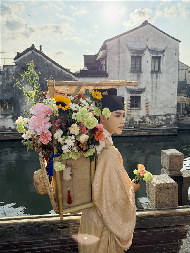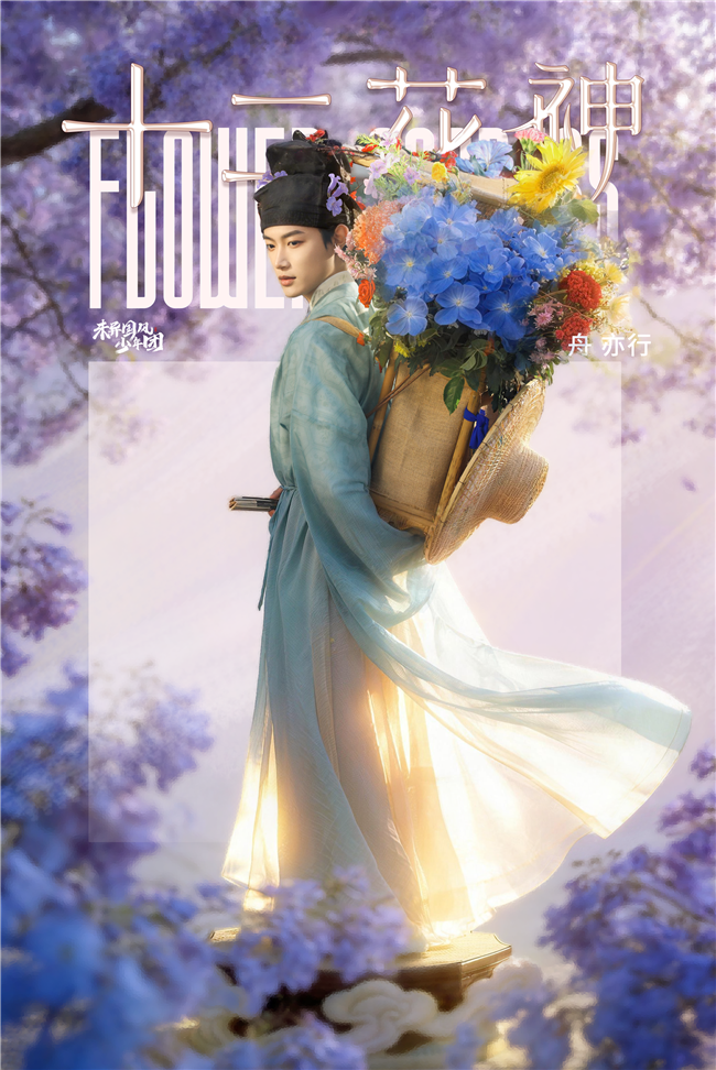 团队负责人杨帆告诉记者,当时市面上汉服形象多以扇、剑为经典造型,缺乏新意。他们与舟亦行一拍即合,锚定“文艺属性+地域特色”,从宋代簪花习俗与古画中汲取灵感,将“汉服、鲜花、少年”三者融合,打造出独一无二的“簪花郎”形象。