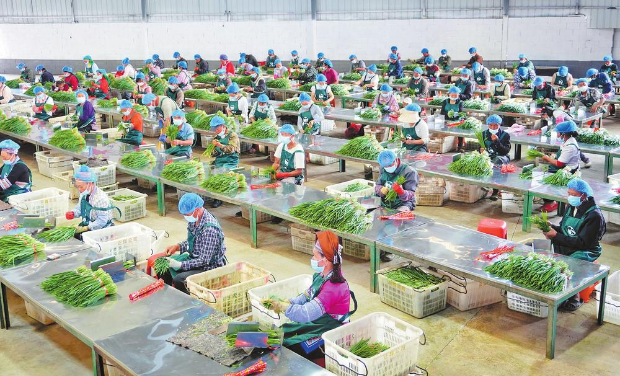 丘北曰者正辉农业开发有限公司吸纳留守妇女等从事蔬菜种植、采摘、分拣。 记者 张文峰 摄
