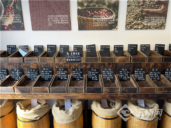 “北归咖仓”精品咖啡店内琳琅满目的咖啡豆。张敏 摄