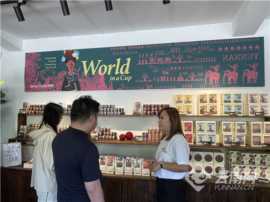 “北归咖仓”精品咖啡店负责人张云思向游客介绍店内产品。张敏 摄