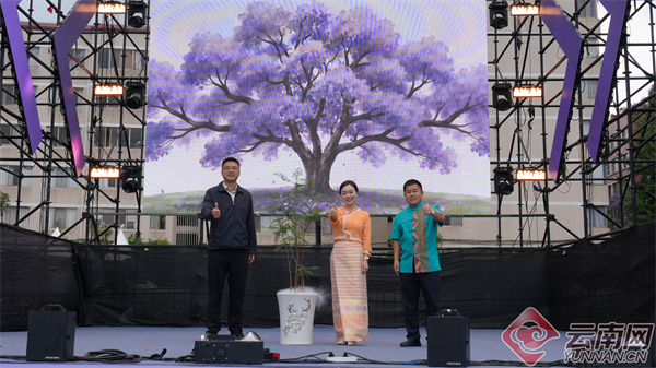 本次活动特别举行“蓝楹花开,友谊结缘”启动仪式,三地领导手持绘有蓝花楹图案的傣陶滴水瓶,共同为蓝花楹种子浇水,现场大屏同步播放蓝花楹茁壮成长、繁花绽放的视频,寓意三地友谊根深叶茂,文旅合作持续深化、硕果累累。
